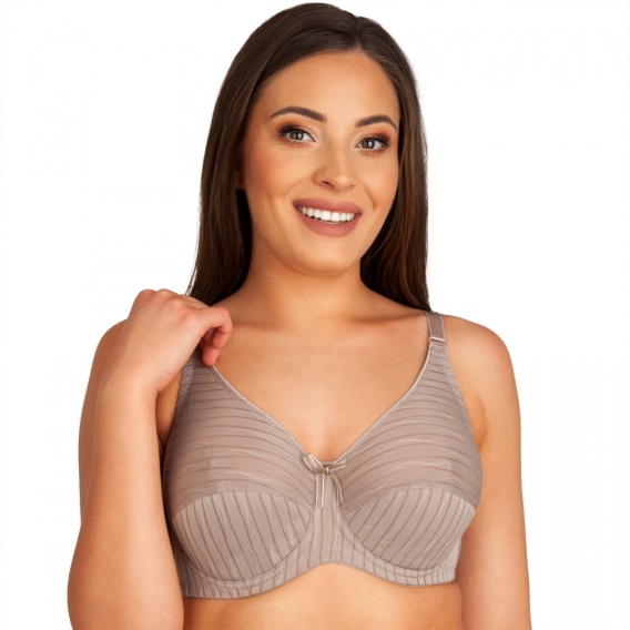 Biustonosz półusztywniany LINAISE JASMINE 1048, to doskonały wybór dla kobiet poszukujących wygodnej bielizny. Biustonosz, został wykonany z niezwykle trwałego i przyjemnego w dotyku materiału. Miseczki z fiszbinami nadają piersiom ładny kształt. Spód miseczek pokrywa bawełniana tkanina. Stanik cechuje ponadczasowa, kobieca elegancja. Dużą część jego powierzchni pokrywają stylowe wzory-paski. Trzyrzędowe zapięcie na potrójnych haftkach i szerokie ramiączka, zapewniają komfort noszenia.