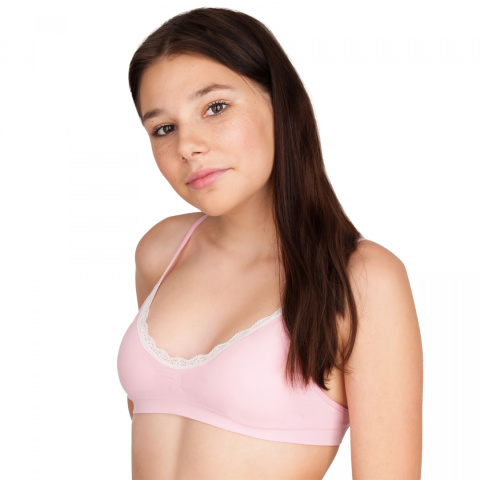 Biustonosz Malvina KD3 to biustonosz miękki stworzony specjalnie z myślą o młodych damach. Top na cienkich ramiączkach został wykonany z wysokiej jakości tkaniny. Miseczki wypełnione są delikatną pianką, którą można wyjąć przed praniem. Dół stanika wykończony jest gumką, która nie uciska ciała a przy tym idealnie dopasowuje się do sylwetki stabilizując położenie biustonosza. Góra przyozdobiona jest koronką. Zarówno ramiączka jak i obwód można regulować idealnie dopasowując do sylwetki młodej damy.